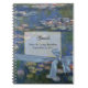 Lovely spiral notebook with Claude Monet's painting Water Lilies as the background. Graphics of a gold tone edged text field and lovely graphics of a blue satin looking ribbon finishes off the colorful guest book. Black text is ready to personalize for your wedding. Matching wedding products available, see links below.