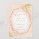 A watercolor background in shades of rose gold is topped by an abstract of fine gold lines and glittering lighting effects to create the pieces of this beautiful wedding suite. The Rehearsal Dinner invitation shown here also features a beautiful gradient frame to hold all your text. Easily add your own names, wedding date and event details using the provided template. Search ID867 to see other pieces and colour choices for this set.
