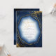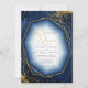 A watercolor background in shades from royal blue to navy is topped by an abstract of fine gold lines and glittering lighting effects to create the pieces of this beautiful wedding suite. The Rehearsal Dinner invitation shown here also features a beautiful gradient frame to hold all your text. Easily add your own names, wedding date and event details using the provided template. Search ID867 to see other pieces and colour choices for this set.