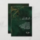 A watercolor background in shades of emerald green is topped by an abstract of fine gold lines and glittering lighting effects to create the pieces of this beautiful wedding suite. The wedding 'details' card shown here also features off-centred text; and a fine gold mesh border on the reverse. Easily add your own initials, wedding date and event details using the provided template. Search ID867 to see other pieces and colour choices for this set.