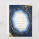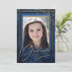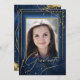 A watercolor background in shades from royal blue to navy is topped by an abstract of fine gold lines and glittering lighting effects to create this beautiful graduation invitation. The card also features elegant calligraphy and a gradient frame to hold your photo. Easily add your own personal event details using the provided template. Search ID867 to see other pieces and color choices for this set.