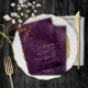 A watercolor background in shades of plum purple is topped by an abstract of fine gold lines and glittering lighting effects to create the pieces of this beautiful wedding suite. The wedding 'Menu' card shown here also features elegant calligraphy and an off-centred layout for visual appeal. Easily add your own initials, wedding date and menu selections using the provided template. Search ID867 to see other pieces and colour choices for this set.