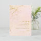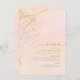 A watercolor background in shades of rose gold is topped by an abstract of fine gold lines and glittering lighting effects to create the pieces of this beautiful wedding suite. The wedding 'Menu' card shown here also features elegant calligraphy and an off-centred layout for visual appeal. Easily add your own initials, wedding date and menu selections using the provided template. Search ID867 to see other pieces and colour choices for this set.