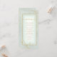 A watercolor background in shades of sage green topped by an abstract of fine gold lines and glittering lighting effects to create the pieces of this beautiful wedding suite. The wedding 'Menu' card shown here also features elegant calligraphy and gradient frames to hold your text both front and back. Easily add your own initials, wedding date and menu selections using the provided template. Search ID867 to see other pieces and colour choices for this set.