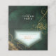 A watercolor background in shades of emerald green is topped by an abstract of fine gold lines and glittering lighting effects to create the pieces of this beautiful wedding suite. The wedding table place card shown here also features a beautiful gradient frame on the front to hold guest names and table numbers. Easily add your own names and wedding date on the back using the provided template. Search ID867 to see other pieces and colour choices for this set.