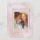 A watercolor background in shades from soft lavender to mauve is topped by an abstract of fine gold lines and glittering lighting effects to create the pieces of this beautiful wedding suite. The wedding 'Thank You' card shown here also features elegant calligraphy and a gradient frame to hold your photo. Easily add your own personal thank you message on the back using the provided template. Search ID867 to see other pieces and colour choices for this set.