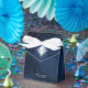 A watercolor background in shades from royal blue to navy is topped by an abstract of fine gold lines and glittering lighting effects to create the pieces of this beautiful wedding suite. The wedding 'Thank You' favour box shown here also features a gradient, diamond-shaped frame to hold the bride and groom's initials and wedding date. Add a personal thank you message using the provided template. Search ID867 to see other pieces and colour choices for this set.