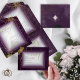 A watercolor background in shades of plum purple is topped by an abstract of fine gold lines and glittering lighting effects to create the pieces of this beautiful wedding suite. The combined wedding Invitation and RSVP card shown here also features off-centred text and a beautiful gradient frames to hold all your text. Easily add your own names, wedding date and event details using the provided template. Search ID867 to see other pieces and colour choices for this set.