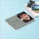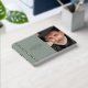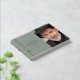 In Loving Memory, Funeral / Celebration of Life photo guestbook, with a simple, minimal, and elegant design with a soft velvety hardcover in sage, real foil in stripes, and text. Ability to change "In loving memory" to "Celebrating the Life of" by using the template text box. Choose from three size options and three foil colours: gold, silver, or rose gold. Personalise it with your loved one information on the front and spine and add on the back any message you like.