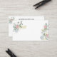 This exquisite wedding guest place card is adorned with an elegant floral motif featuring delicate roses and hydrangeas nestled among lush green leaves.