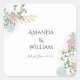 This exquisite wedding sticker is adorned with an elegant floral motif featuring delicate roses and hydrangeas nestled among lush green leaves.