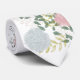 This exquisite wedding neck tie is adorned with an elegant floral motif featuring delicate roses and hydrangeas nestled among lush green leaves.