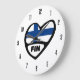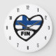 Finland Country Code FIN Flag Heart Large Clock
