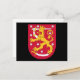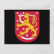 The coat of arms of Finland is a crowned lion on a red field, the right forepaw replaced with an armoured hand brandishing a sword, trampling on a sabre with the hindpaws. The coat of arms was originally created around the year 1580.