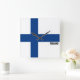 Finland Flag Dazzling Patriotic Square Wall Clock in the colours and the elements of the Finland national flag covering the front of the clock. National flag colours are complemented with the text "Finland" on the bottom. Text is fully customisable using "Customise it!" feature. Feel free to change it, remove it or add your own. This charming design is the stunning gift and the great show piece on the wall. © CountriesOfTheWorld