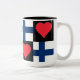 A fun two-tone Finland coffee mug for proud Finnish people. With the a unique chequered heart pattern inspired by the national flag of Finland. Makes a fun gift idea for Finnish friends and family, and anybody who loves Finland.