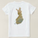 The front of this t-shirt boldly displays the Finnish flag with its distinctive offset blue cross on a white background. This is matched at the back by an attractive map of Finland.