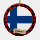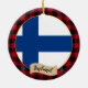 Finland, Red buffalo plaid & Finnish Flag Ceramic Ornament
