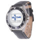 My husband loves the watch, he likes the dial, the graphics, the band, and it keeps perfect time.