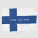 Finnish flag of Finland custom golfing gift golf towel. Custom sports presents for him or her. Unique golfing gifts for men and women. Create fun Birthday gift ideas for golfer, husband, dad, wife, mum, father, friend, co worker, boss, colleague, coach, instructor, trainer, teacher, grandpa, retired person, pensioner, golf lover, player, politician, tournament etc. Including hook to hang it up. Unique golf accessories for friends and family. Scandinavian pride. Also great for Christmas or Father's Day.