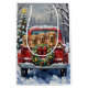 Bring happy, Nordic charm to your holiday season with this adorable Finnish Lapphund Christmas design! This festive scene features three cheerful, fluffy-coated Finnish Lapphunds sitting contentedly in the back of a classic red pickup truck, perfectly suited for the beautiful snowy winter forest setting. The vintage truck is adorned with a vibrant Christmas wreath, twinkling with red and gold ornaments and warm, glowing lights. Abundant snowflakes fall around the scene, truly creating a winter wonderland. With a decorated Christmas tree in the background, this design is perfect for capturing the joyful spirit of the holidays and makes an excellent Christmas gift for any Finnish Lapphund owner, dog lover, or admirer of festive and beloved dog art.