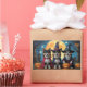 A playful Halloween scene featuring a mischievous little pup peeking out of a carved pumpkin, surrounded by spooky-fun fall vibes. With cheeky charm and autumn colours, it’s the perfect touch of humour for the season.