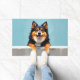 The cool arctic blue background adds a crisp and refreshing feel, perfect for welcoming entryways. Designed with extra space at the top and bottom, it allows easy personalization with names, welcome messages, or custom text—making it ideal for unique dog-themed doormats and thoughtful gifts.
