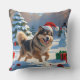 Finnish Lapphund Running Snow with Christmas Hat Cushion