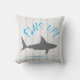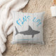 Throw cushion with a Great White Shark swimming in the ocean beneath the words Fins up!