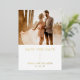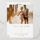 Contemporary and modern foil wedding save the date card featuring a simple and minimal design with "Save the Date" along with your names and wedding date in bold typography below your favourite photo. The back has a second picture, your three initial monogram and your personalised message. This minimalist typographic wedding save the date card features foil text on the front.