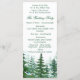 Wedding program order of ceremony with rustic watercolor fir trees on a choose your own colour background. You can add the text of your choice to the front and back in the font style you prefer.