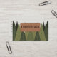 A business card with a forest of fir trees illustration and a wooden sign in the foreground. Perfect for carpenter, woodworker and lumberjack services (tree removal and pruning, firewood, stump grinding and more). It comes with full contact and list of services on the back!
