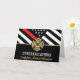 This design features a firemen's flag with black and white stripes, and a thin red line stripe as well. "Congratulations" and a fireman's badge sits above the name of the graduating firefighter. This design also works great for retiring firefighters, lieutenants, or chiefs. Celebrate in style!