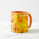 A pattern or texture of burning fire and flames. Vibrant orange and yellow colours. The symbol of energy and warmth. A digital painting from a photograph. Beautiful customisable coffee mug. You can change the image and you can change or delete the template text. You can transfer this design to a variety of other products, including latte mug, glass cup, pitcher, teapot, chilli bowl, candy jar, water bottles, candles. Just choose the product from the scrollable option "Transfer design to a product". Do not forget to use the "Personalise", or "Edit design" button, or the blue link "Details" --> "Click to customise further" --> "FILL/FIT" to ADJUST THE DESIGN TO THE SIZE AND SHAPE of the product, to rotate it, to change the position, type, colour of the font, or to add more text from the scratch. Just be creative and have fun.