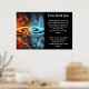 Two hands, one fire, one ice, reach out to touch in this artistic representation. The icy blue hand shimmers with frost and icicles, embodying coldness and clarity. The fiery orange and red hand flickers with flames and smoke, embodying heat and passion. The background is a dark, smoky gradient, enhancing the contrast. Light effects emphasize the elemental theme. "Fire And Ice" is at the top in bold, modern typography.