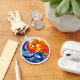 Fire and Ice design in a yin-yang shape represents duality. Hand drawn in colour pencils, this hot colours for fire and cool blues for ice image looks great on any item.