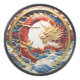A menacing fire breathing dragon with vibrant red, purple, and yellow scales, showcasing its terrifyingly large teeth, realistic shading and textures, high detail, close-up angle, dark background with highlights, digital painting 4k resolution, cinematic lighting, fear-inducing atmosphere.On this artificial intelligence photo.