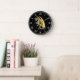 Wall Clock, 25.4 cm Round Black Wooden Frame