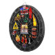 An awesome firefighter inspired dartboard. The perfect dartboard for fire departments, homes, and businesses. Features an array of fire and firefighting targets with the bullseye centred around a fiery house. Fully customisable if desired to add names, images, and more. Enjoy!