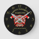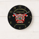 Fire Department Gold And Red Badge With Fire Axes Round Clock