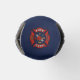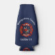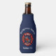 Stylish bottle cooler design for firehouses, firefighters and their families, features red generic fire department logo on dark blue background. Customise with city or county department details or firefighter name in modern white font