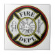 Red and yellow firefighters badge in circle. Fireman's, helmet, hook and ladder, fire hydrant and more create a great firefighting gift!
