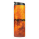 A thermal tumbler featuring a photo of fire. Text can be modified to say what ever you want.