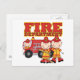 Fire Department T-shirts, bodysuits, tote bags, mugs, magnets, and other firefighter gear featuring a red fire engine and several stick figure firefighters.