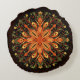 Fire Element Mandala - Kaleidoscopic Flame Creatur Round Cushion