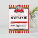 Sound the Alarm! Celebrate your fire engine couples baby shower with our Fire Engine Party Invitation. This red and black fire engine baby shower invitations features a red fire truck on red stripes pattern. Perfect for your fire truck couples baby shower party, fire engine baby shower party or fire truck baby shower party.