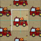 Fun plaid fire truck design over a natural colour blend of tan and brown shades.