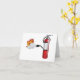 The best way to put out a fire is with a fire extinguisher. This design has a traditional red fire extinguisher that is squirting some foam on some flames to put them out. This fire extinguisher putting out a fire design looks great on these note cards