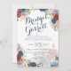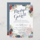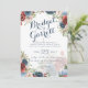 Elegant hand script designer text with blue and burgundy watercolor flowers wedding invitation.