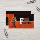 Fire fighter/fireman eye catching business cards black red-orange, featuring a fire fighter with his axe in flames on black and red-orange/grenadier background. An effective profile card with a professional look. Some elements courtesy of vectorportal.com.